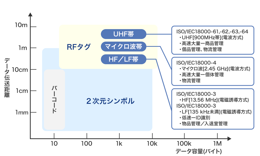 RFIDの通信方式では、主に「低周波(LF帯)」「高周波(HF帯)」「超高周波(UHF帯)」「マイクロ波帯」という4種類の周波数が用いられています。